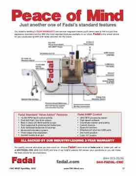 For quality, service and value you can count on, choose Fadal. Learn more at fadal.com or, better yet, call us at 844-FADAL-CNC (844-323-2526) and one of our helpful experts will answer your questions so you can make the best choice for your business.