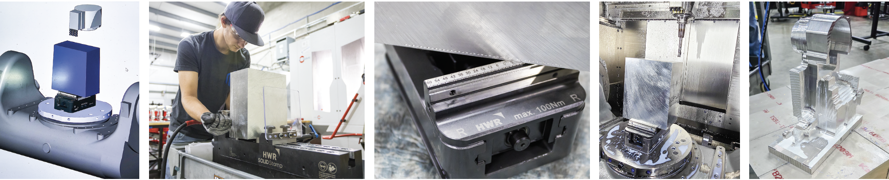 Before loading a block of material in the mill a Team Member utilizes HWR’s Solid Stamp to emboss the raw material. The process is fast, accurate, and repeatable. The stamped material is then loaded into the matching HWR vise which is mounted to the zero-point top plate in the Hermle C250.