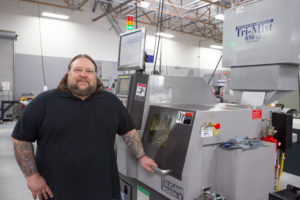 Tim’s manufacturing career has come full circle. It started nearly twenty years ago in Arizona before heading back to Minnesota and making it a career. “I was jamming in bands when my first son was born,” tells Tim. “I needed a trade at that point in my life so I got a job here in Arizona machining parts for the piercing and tattoo industries.” Tim moved back to Minnesota and found work at mom and pop type places before landing at larger companies doing complex aerospace parts in super alloys like Hastelloy, Iconel, and 347. “Some guys just have that thing that suits them for this line of work,” adds Tim. “I’m lucky to have a knack and to have learned from talented people. A year into my new career I was writing programs and setting up machines.” Tim credits being a drummer for his ability to look at a drawing and see in his head how it needs to be made. “Drummers are unusual and maybe I visualize differently than others. I love seeing a print and bringing that part to life.”