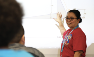 STEM instructor Beverly Sayson works with student Gabriel Tinajero (age 13) in the school’s CAD/CAM lab.