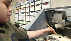The school’s relationship with Technical Employment Training goes back quite a few years. “Some time ago,” said Cochrane-Benoit, “ our 4th grade students were having assessment problems. What we saw was that they were able to articulate their learning orally, but were doing poorly in the written tests. We discovered that many of them needed eyeglasses. Either they could not afford eyeglasses or their eyeglasses were broken. We created a project-based learning lesson where the students would design their own eyeglass frames. We went out into industry, looking for a company willing to partner with our students to manufacture the frames the students designed. Technical Employment Training’s Dr. Bill Clarke came through for us and as the project progressed, we were introduced to CNC machining and the various CAD/CAM programs.”