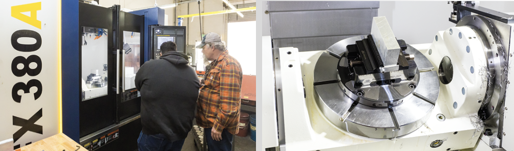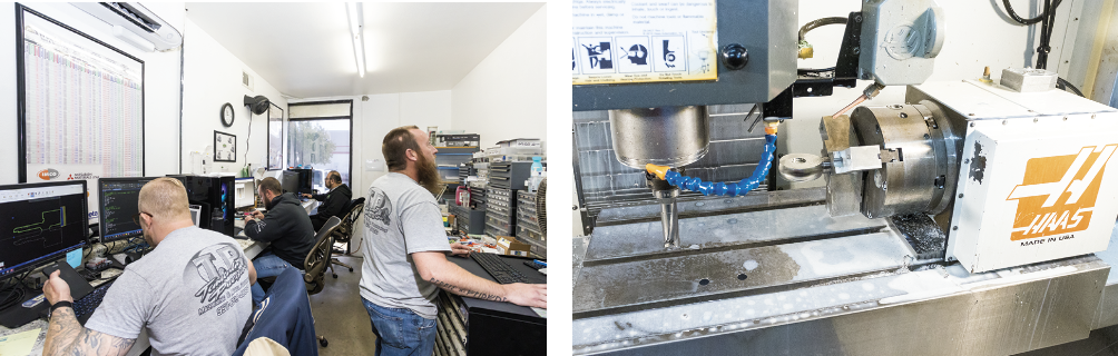 Left – “Computerization” began with TP’s engineering department being able to communicate directly with their customer’s teams. Right – Multiple Haas mills are equipped with trunnions, allowing for 5th axis running.