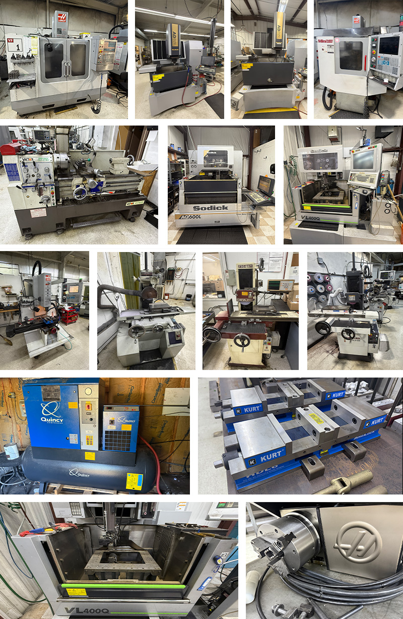 CNC Machining, EDMs, Grinders, Boring Mill, Inspection, Parts Cleaning,